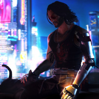 the video game "Cyberpunk 2077." In this particular shot, we see a character known as