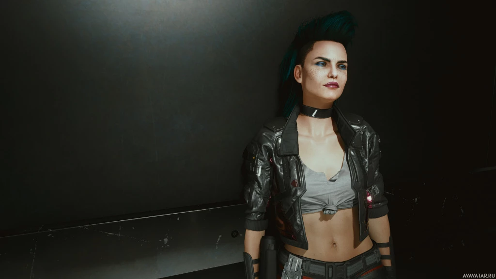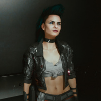 the video game "Cyberpunk 2077." She is depicted as a female with