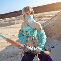 In the image, there is a person cosplaying as Link, a character from