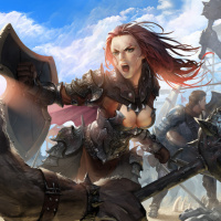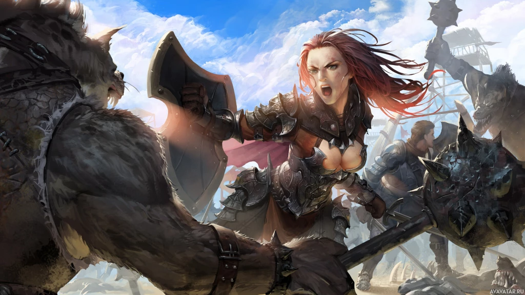 In the image, there is a female warrior with