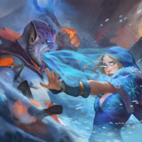 the video game Dota 2. On the left is a character known as Crystal Maiden,