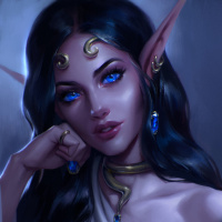 fantasy genres. Her hair is long and flowing, with some blue highlights or tones, suggesting she might have magical abilities or simply be styled for effect within