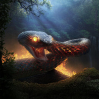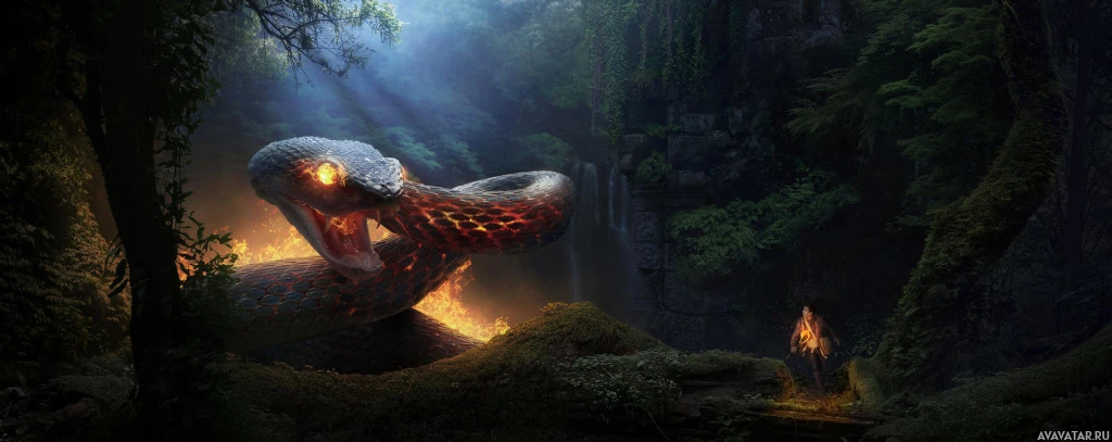 a fantasy scene with a snake. It appears to be a concept