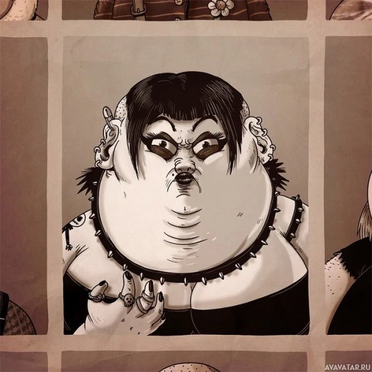 The image shows a cartoon drawing of a character with exaggerated features that give it an eerie or unsettling appearance, which might be associated with