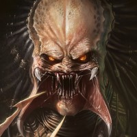 advanced armor and weapons. This particular depiction shows the Predator with a more human-like appearance than in the movies, where they are typically seen wearing