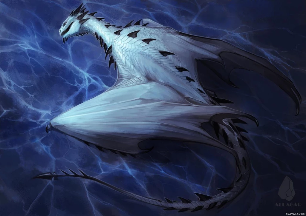 a fantasy scene featuring a dragon. It appears to be an illustration rather than a photograph, characterized by its stylized and detailed artwork. The dragon is shown with intricate scales,