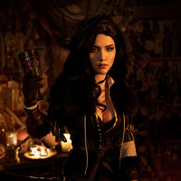 The image features a character who appears to be Yennefer from the "The Witcher" series, portrayed by