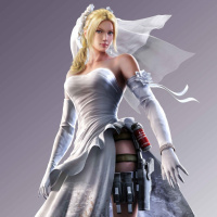 bridal wear. There are also details like what seems to be a weapon she's holding on her side, indicating she might have