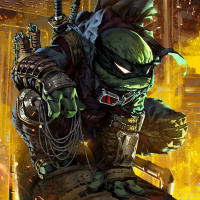 Ninja Turtle character, which is recognizable by its green skin and attire. This character is one of the four main turtles in the series that originated as