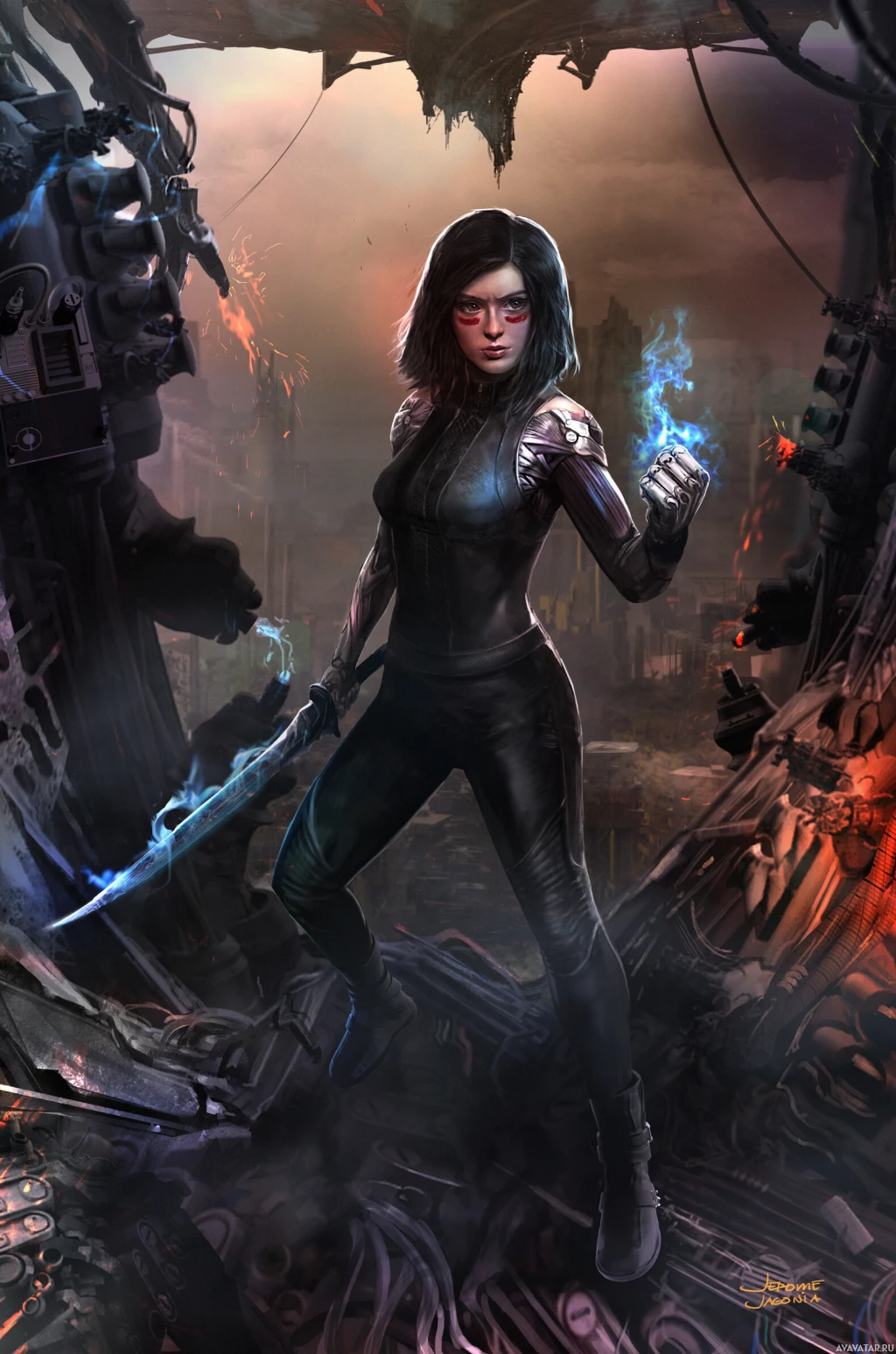 The image depicts a character that appears to be Alita, known from the manga and film "Battle