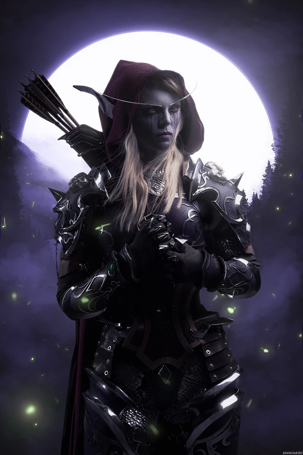 The image shows a character that appears to be Sylvanas Windrunner from the "Warcraft" series, depicted in