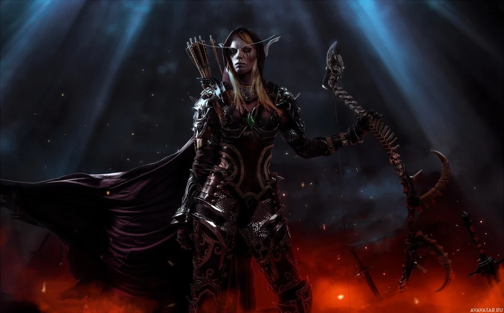 World of Warcraft." The character is Sylvanas Windrunner, a key figure in