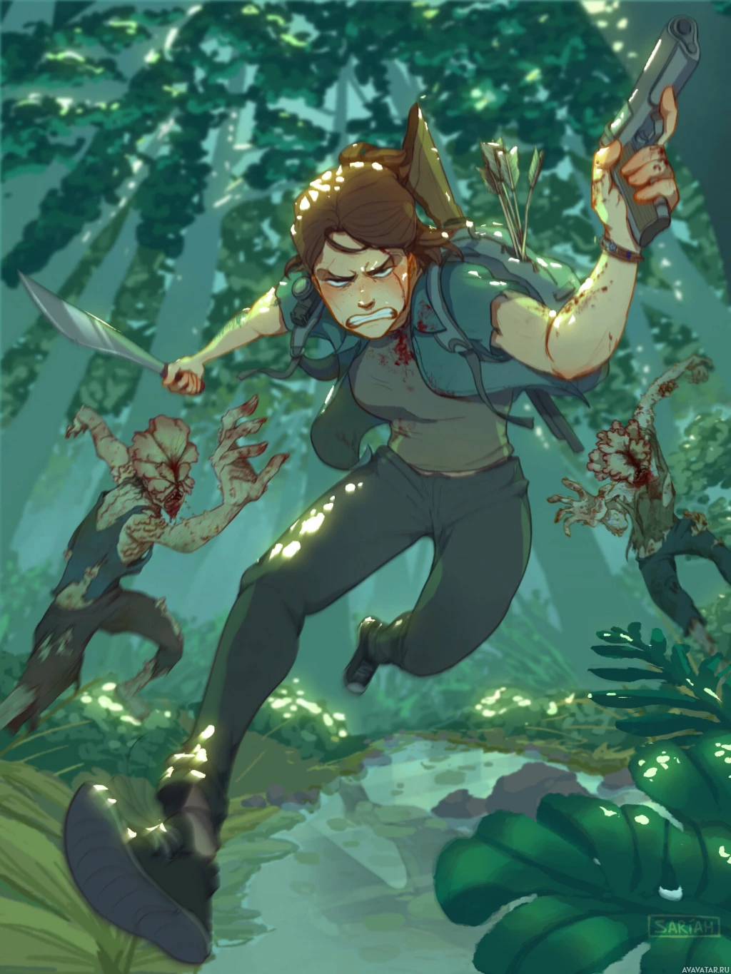 infected individuals. The environment looks like it could be a jungle or