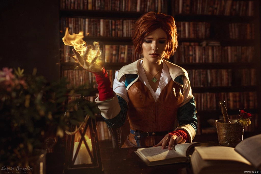 the mystical ambiance of the scene. The lighting and composition give the image a dramatic and moody feel, capturing the essence of Triss's character from the game.