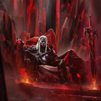 a commanding presence over the surroundings. The setting suggests a dark or underground environment, possibly hinting at a drow or a similar mythical race known for their elven features and