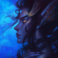 a fantasy character with closed eyes. The character appears to be