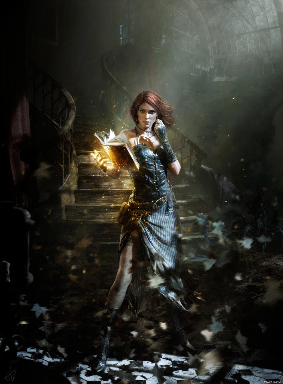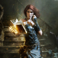 red hair, who appears to be in a fantasy-themed setting. The individual is holding