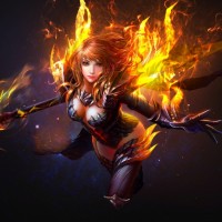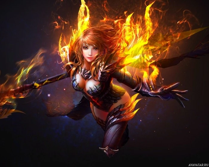 magical abilities related to the element of fire. The artwork is highly detailed and showcases the character in