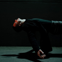 an outdoor setting, possibly a parking lot, given the concrete surface and the absence of any significant interior elements. The lighting is subdued, suggesting it might be nighttime or in a low-