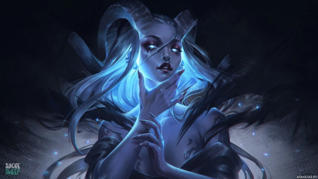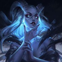 a fantasy character that appears to be a Draenei, a race of humanoid creatures from the "World of Warcraft" franchise. The character is shown with a blue and white complexion, horn-like structures on their head, and pointed ears typical of the Draenei's appearance in the game. They are styled in an artistic manner, suggesting they might be part of