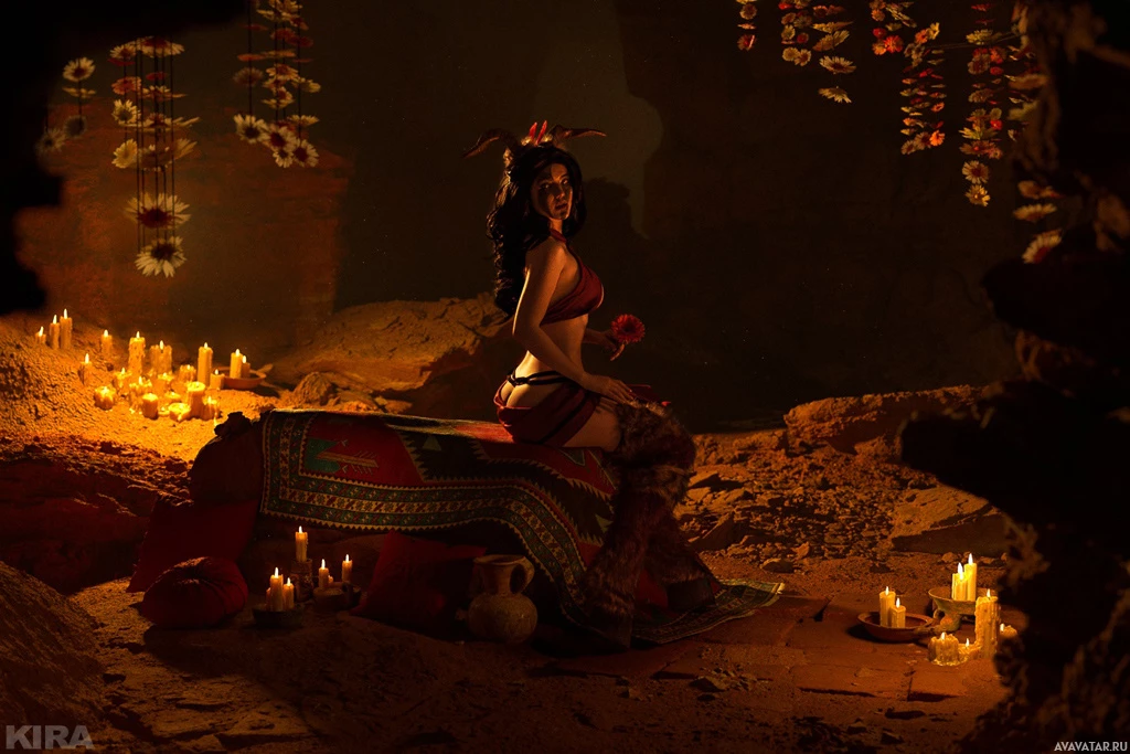 The image depicts a person dressed as a character that appears to be from the "The Witcher 3: Wild Hunt"