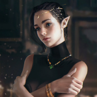 lighting effects that give the scene an ethereal quality. The character has pointed ears, which are a common feature of fantasy-style elves, along with intricate hair and jewelry designs that suggest a high