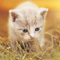The image shows a small kitten with striking