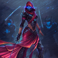 an elaborate armor and helmet with a visor that obscures the face, giving them an anonymous or mysterious appearance. They are holding what appears to be a sword in their right hand, suggesting