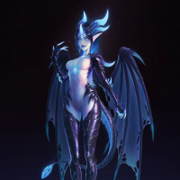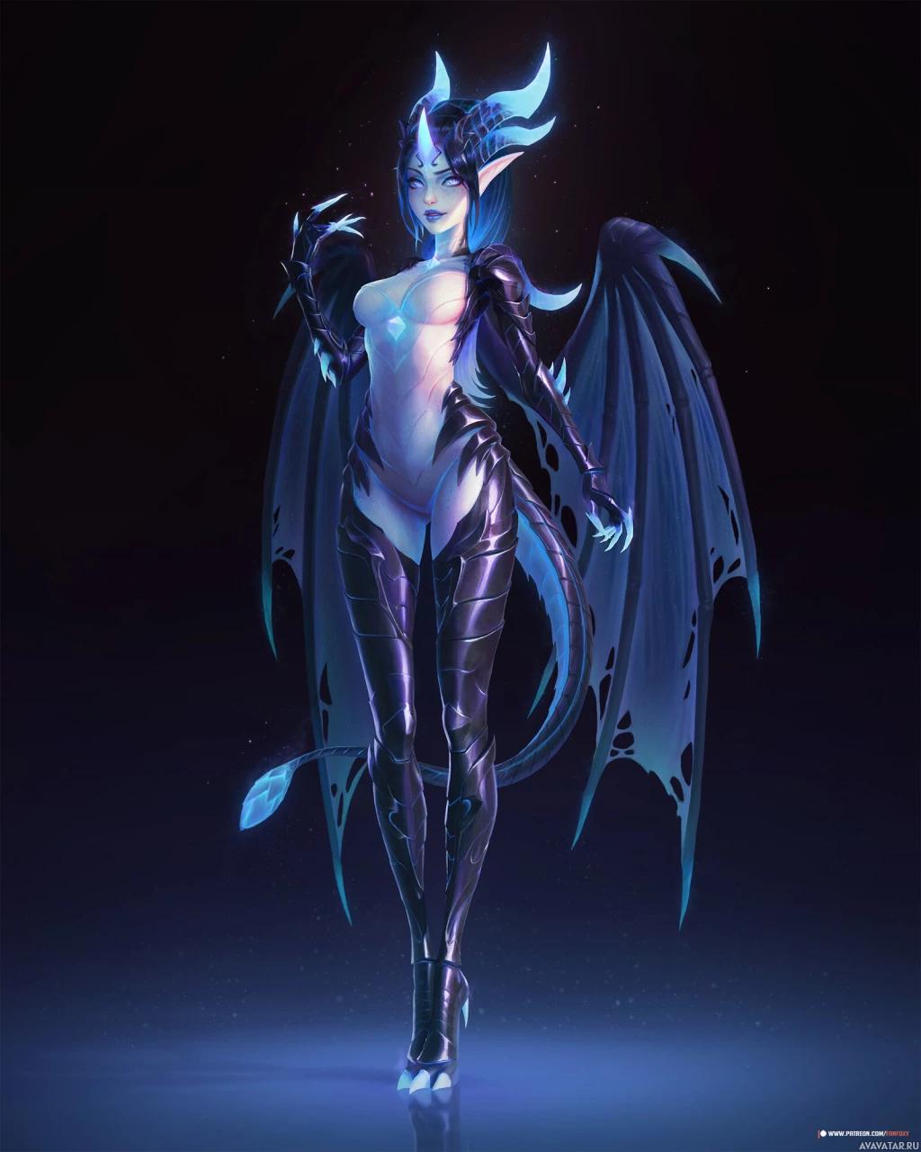 The image depicts a fantasy-themed character that resembles a succubus, which is