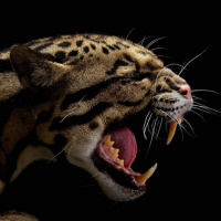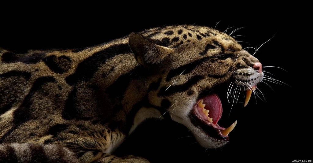 На картинке изображена крупная кошка, в частности леопард, с открытой пастью, как будто она рычит или, возможно, ревет. Характерный для этого вида рисунок шерсти - темные пятна на более светлом фоне.