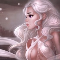 mythical creature. Her expression is thoughtful or contemplative, as she gazes to the side with