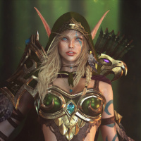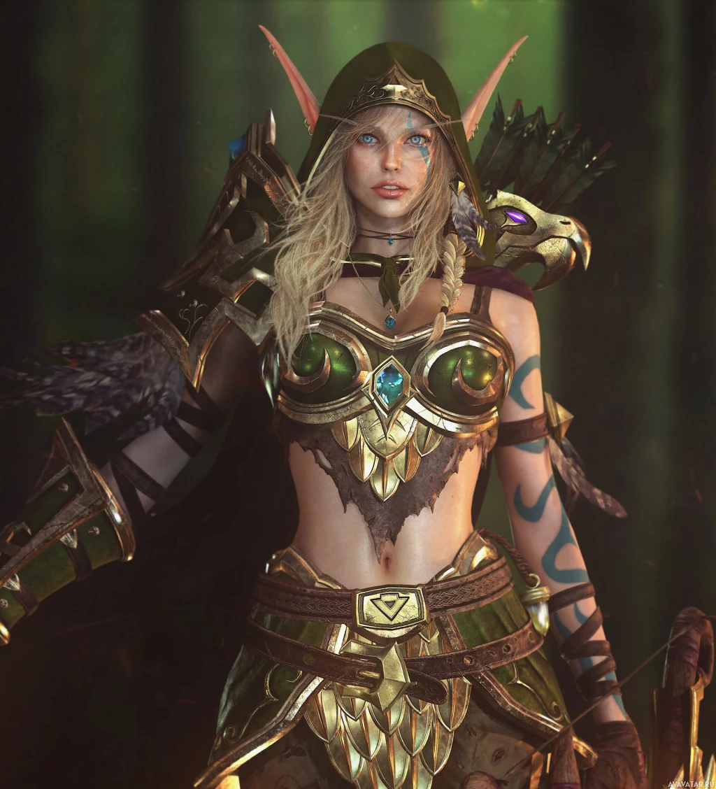 The image depicts a fantasy-themed character that appears to be an elf. She is wearing
