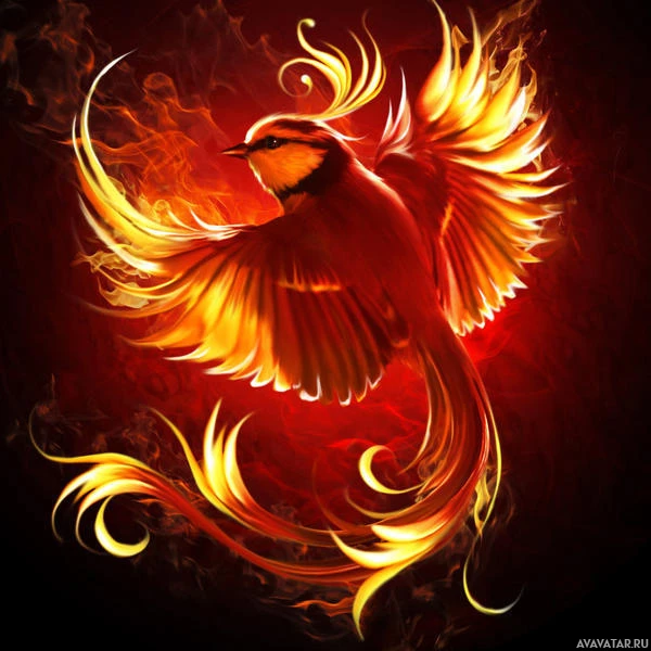 vibrant plumage and is depicted as if it's soaring or flying, which are common themes associated with the myth of the phoenix.