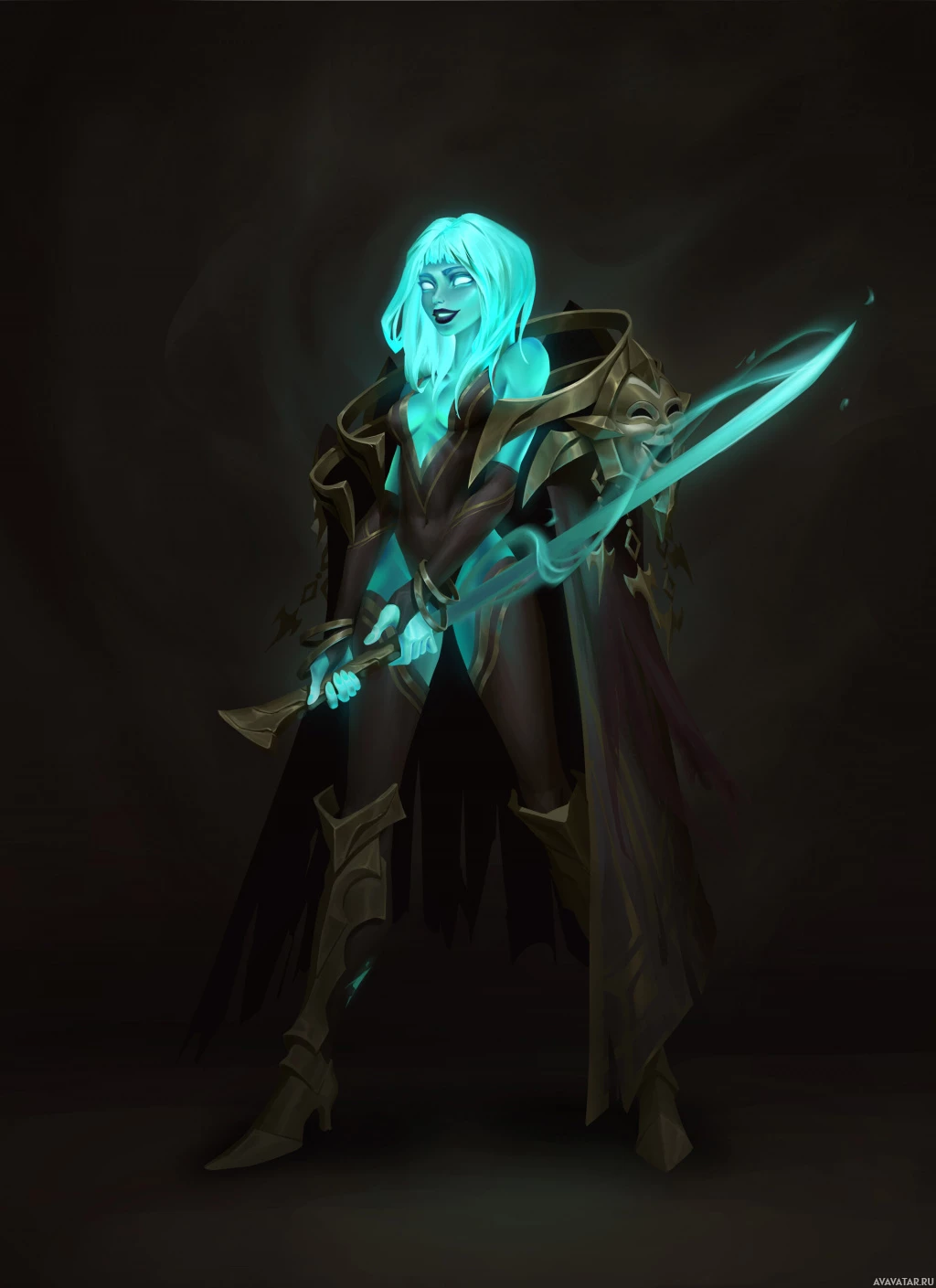На картинке изображен 3D-персонаж из жанра фэнтези. У этого персонажа длинные синие волосы, и он держит меч, который излучает светящуюся зеленую энергию. На нем надето что-то похожее на доспехи с замысловатыми узорами, что позволяет предположить, что он может быть воином или магом. Фон нейтральный, что делает акцент на персонаже.