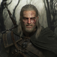 The image depicts Geralt of Rivia, a character from