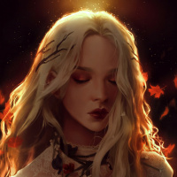 white hair. Her eyes are closed, and she has an ethereal and serene expression on her face. She is adorned with delicate flower-like patterns or designs on her attire, which adds to the magical or fairy-tale quality of the image. The background suggests a dimly