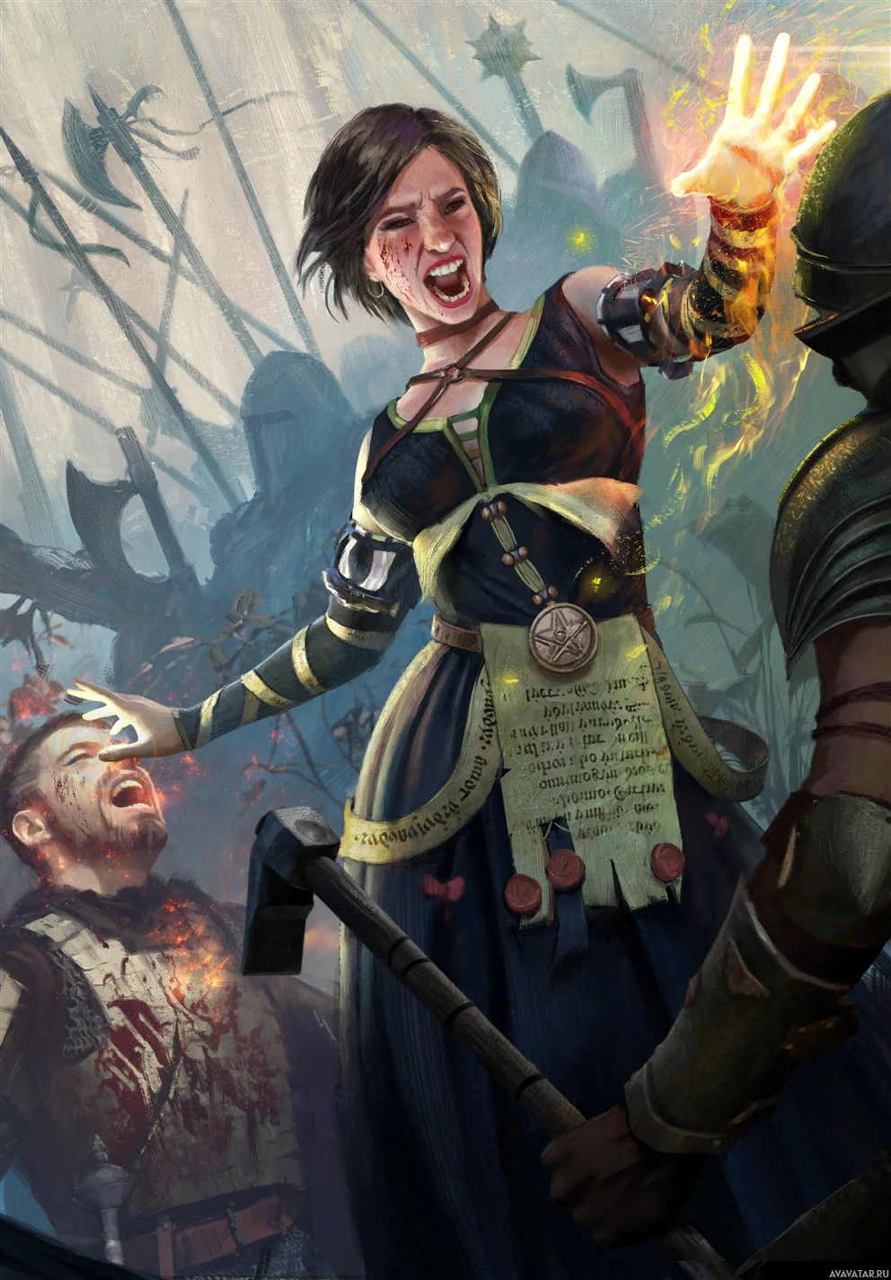 the video game "The Witcher 3: Wild Hunt." It features several characters, including