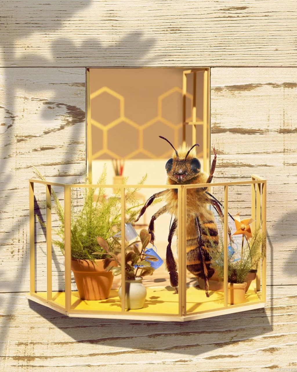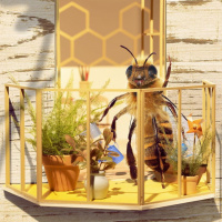 a clear sky above, creating a naturalistic environment that could mimic the outdoor conditions where bees typically thrive.