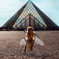 a playful juxtaposition of an insect against an iconic human-made landmark.