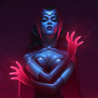 The image features a character known as Scarlet Witch from the Marvel