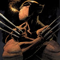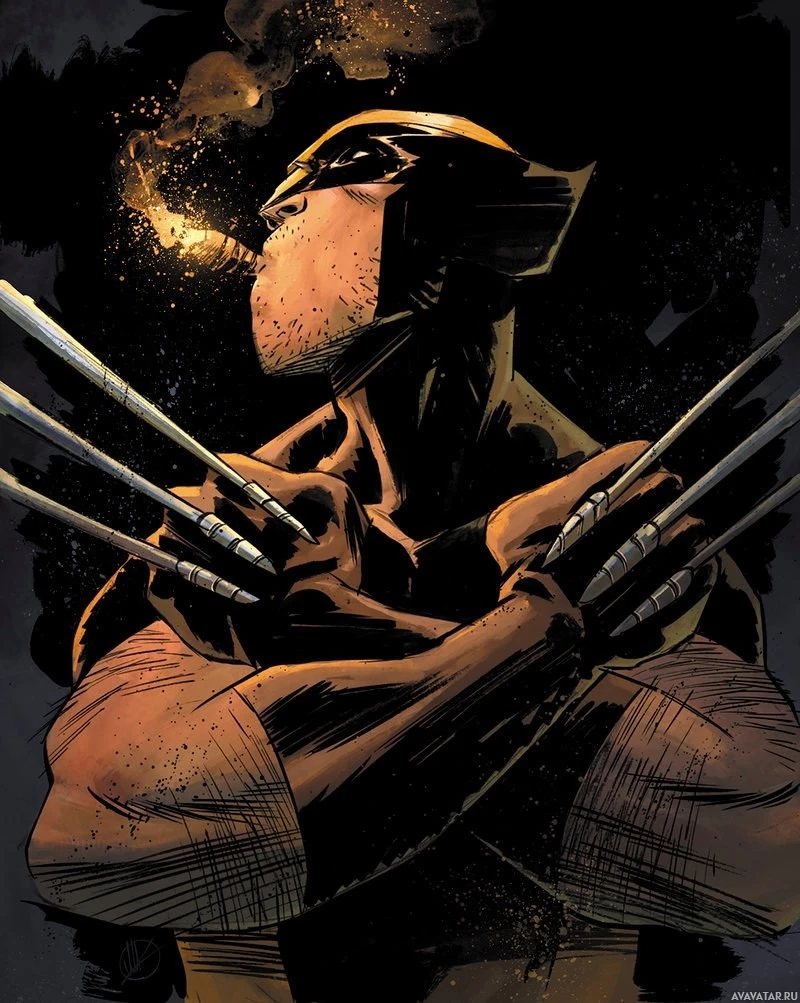 The image features a character known as Wolverine, who is depicted with his arms crossed and looking to the side. He has a distinctive hairstyle and wears a costume that includes claws on his hands, which is characteristic of his appearance in