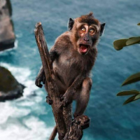 an expressive face, possibly looking distressed or concerned, which gives the impression that it is screaming. The setting suggests it could be