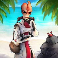 palm trees and sand, suggesting a setting of relaxation or exploration within the context of the Mass Effect universe. There are also some