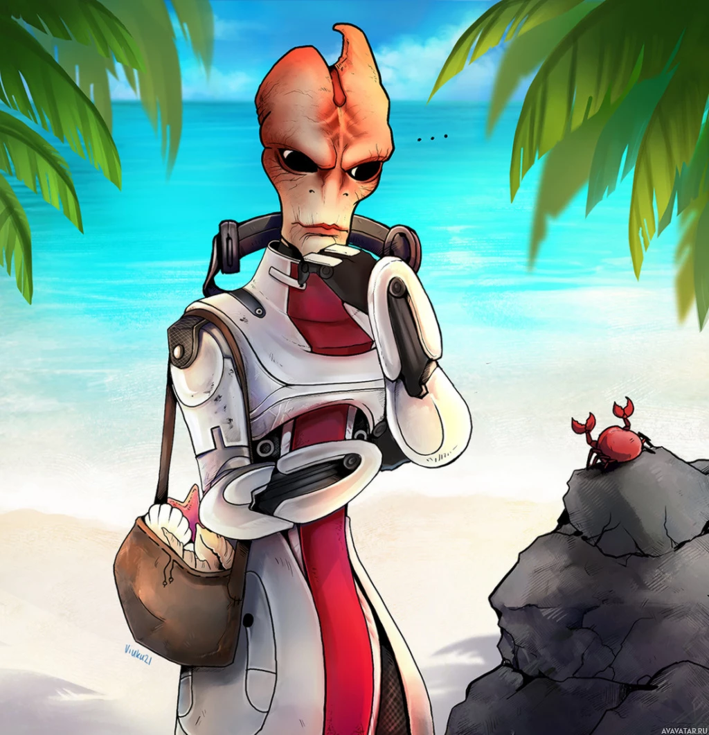 The image depicts a character that appears to be from the Mass Effect video