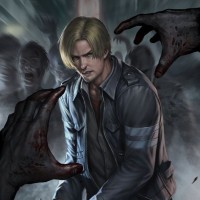 several zombies attacking each other or attempting to reach him. He appears to be in a dark,