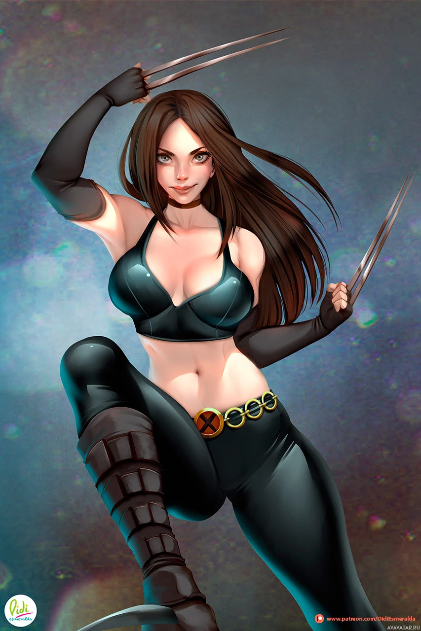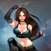 a female character, likely inspired by the character X-23 from the X-Men series. She is shown in
