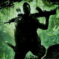 a jungle environment. The soldier is equipped with a weapon, possibly a rifle or