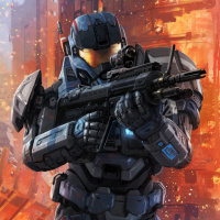a science fiction setting, possibly from the "Halo" series where such characters are known as Spartans or other similar elite forces. The presence of a weapon and armor implies combat readiness and the context indicates that this could be a scene from