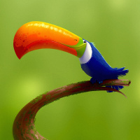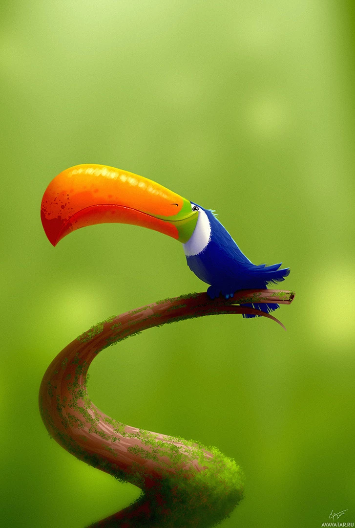 Это изображение разноцветного попугая, который, кажется, сидит на ветке с открытым клювом. На заднем плане изображена пышная зелень, которая напоминает естественную обстановку джунглей.