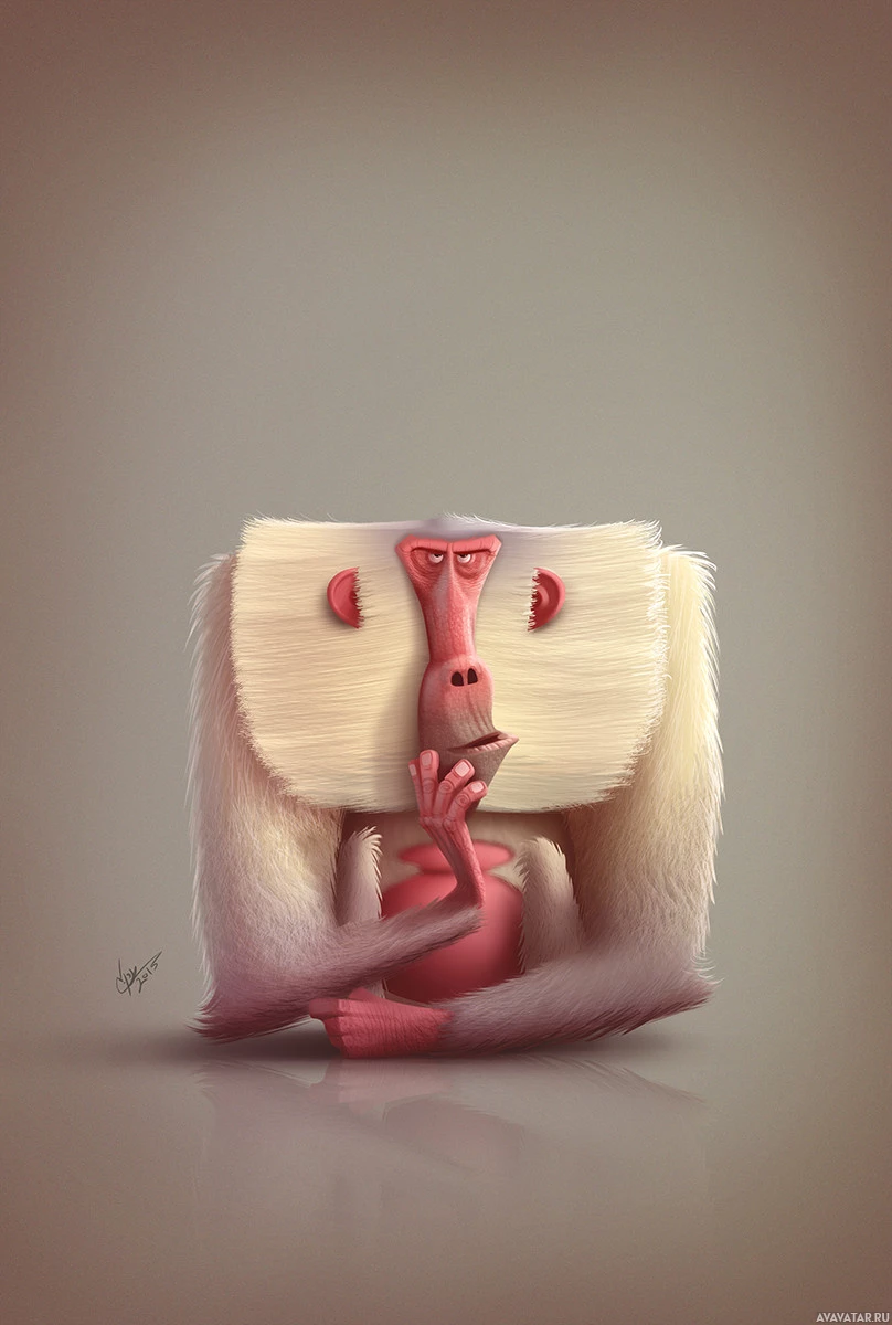 This image features an anthropomorphic monkey with a humanoid posture, sitting with its hands clasped together as if in